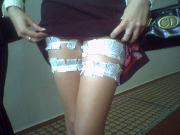 Ki nem puskázott soha, tegye fel a kezét! Rakd le te is! Vagy, ha tényleg sosem próbáltad, hát nagy adrenalin löketet hagytál ki öregem. Puskázni rettentő izgalmas, még ha nem túl becsületes is. És lássuk be, a legkiválóbb tanulókkal is előfordul, hogy nagy tétnél leblokkol az agyuk, a rövidzárlat miatt pedig elbuknak néhány pontot, esetleg osztályzatot. Ha pedig nem tudunk valami oknál fogva rendesen felkészülni, bizony latba vetjük a puska lehetőségét is. Kockáztatunk a túlélés érdekében. Az alábbi diákok sem bízták a véletlenre, összeeszkabáltak maguknak egy-egy alaposan kidolgozott puskát. Leleményes megoldások következnek a közelgő érettségihez.