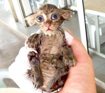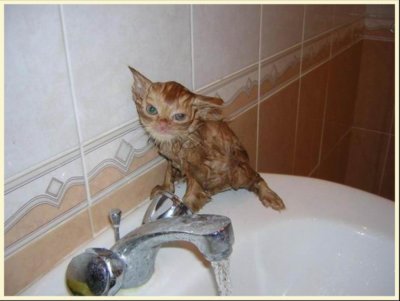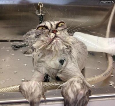 8. A most már tiszta macska kivágódik a WC-ből, kirohan, ahol is magától megszárad.